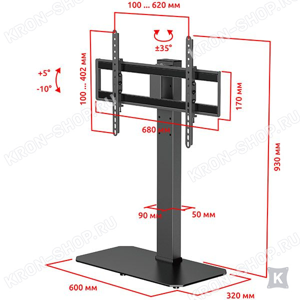 Настольная подставка для телевизоров и мониторов с диагональю от 37 до 75 дюймов.