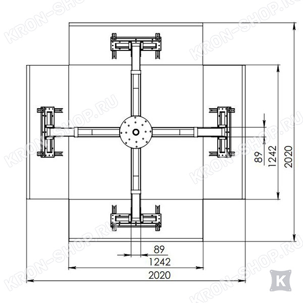 Потолочный кронштейн для четырёх телевизоров с диагональю от 32 до 55 дюймов.