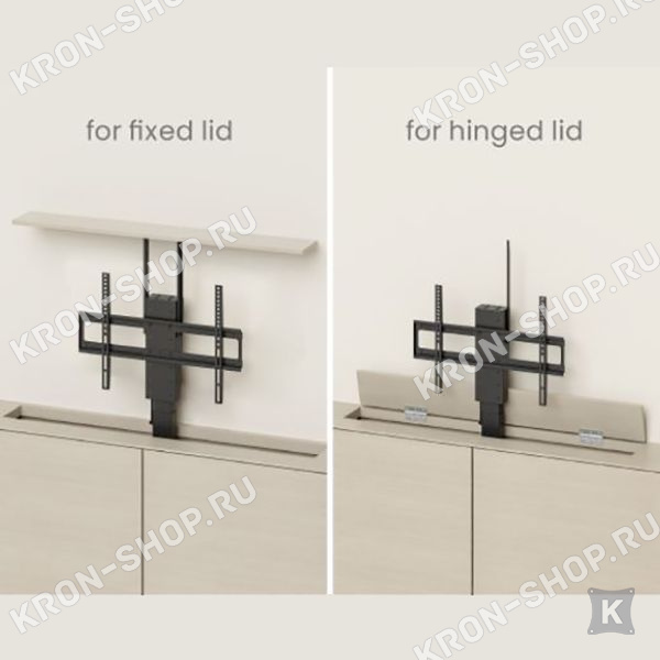 Механизм спроектирован с использованием самых передовых технологий в подъемных механизмах встраиваемых в мебель, что обеспечивает стабильный и плавный подъем телевизора с диагональю от 43” до 80”.