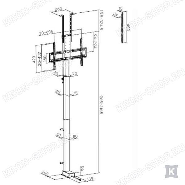 Сам ТВ монтируется на механизм при помощи адаптера со стандартами крепления VESA 200x200, 200x300, 300x200, 200x400, 400x200, 300x300, 300x400, 400x300, 600x200, 350x350, 400x400, 600x300, 400x600, 600x400