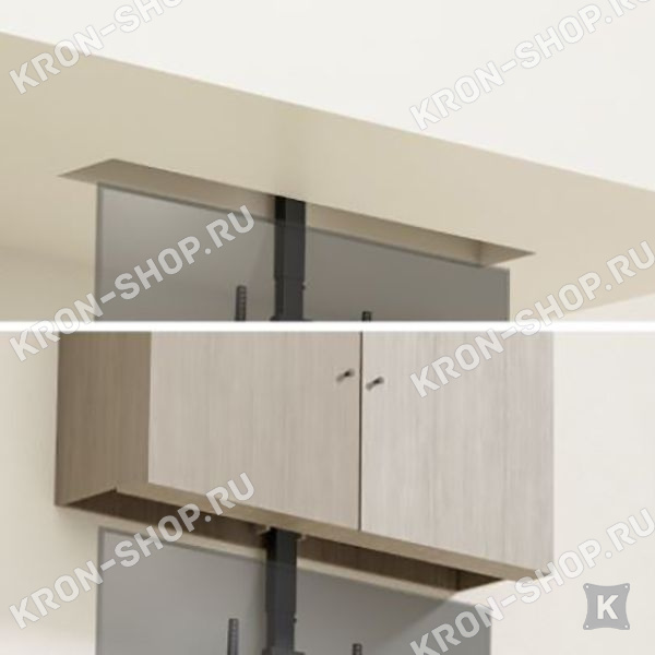 Благодаря своей конструкции механизм может не только поднимать снизу в верх, но опускать сверху в низ, т.е. его можно устанавливать как в пол, так и в потолок, что значительно увеличивает возможности использования этой модели подъемника для ТВ.