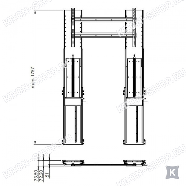 Venset TS1000 TWIN — состоит из двух моторизованных лифта с системой синхронизации (одновременный и синхронный ход лифтов), которая позволяет незаметно разместить Ваш большой телевизор размером 65″ — 80″ и весом до 100 кг в напольной мебели или на стене, а также весом до 50 кг при движении телевизора вдоль стены вниз. Лифты позволяют поднимать телевизоры с весом до 100 кг (стандартная установка ТВ), 50 кг (ТВ смонтирован наоборот). Глубина механизма составляет лишь 50 мм между стеной и экраном. Радио пульт (RF) дистанционного управления для удобства использования. Функция «Регулируемый ход» позволяет Вам настроить высоту подъема на необходимую Вам. Функция «Защита от зажима». В случае попадания посторонних предметов лифт прекращает свое движение. Чувствительность системы защиты от зажима можно регулировать. Система срабатывает в обоих направлениях, что делает подъемный механизм еще более безопасным. Моторизованный лифт TS1000C Basic Dual позволит Вам разместить телевизор большого размера в гостинной или каминном зале. Venset — лифты и Ваши идеи. Сделайте свой дом лучше! Питание лифта от стандартной электросети 110 — 240 VAC / 50 — 60 Гц. Тип открытия крышки: Конфигурация с откидной крышкой (штатно) — Это означает, что крышка крепится на шарнире. Дополнительный толкатель будет толкать откидную крышку, когда лифт поднимет телевизор вверх. Когда телевизор снова опустится, направляющие мягко опустят крышку в закрытое положение. (Примечание: Крышка и фактические петли не включены). Конфигурация c «плавающей крышкой» (опция) — Это означает, что крышка (или часть крышки) находится на верхней части подъемной системы, прямо над телевизором, и крышка будет подниматься вверх и вниз вместе с телевизором. Особенности: 1. Система синхронизации — Синхронная работа 2-х лифтов одновременно поднимающихся и/или опускающихся. 2. Функция «Регулируемый ход» — Позволяет Вам настроить высоту подъема на необходимую Вам. Регулировка хода в данной модели осуществляется электронно, а не посредством переключения предохранителей в блоке управления, что значительно упрощает настройку лифта. 3. Система защиты от зажимa "Anti-squeeze" — Давление, заданное перед возвратом, равно весу установленного экрана. В случае попадания посторонних предметов лифт прекращает свое движение. Чувствительность системы защиты от зажима можно регулировать.