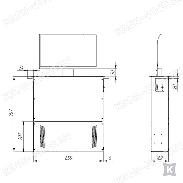 Механизм спроектирован с использованием самых передовых технологий в подъемных механизмах встраиваемых в мебель, что обеспечивает стабильный и плавный подъем телевизора с диагональю до 27”.