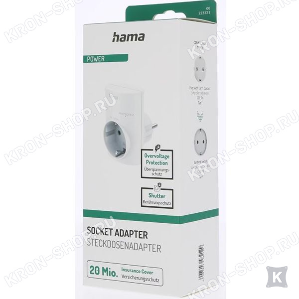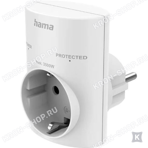 Сетевой фильтр-адаптер Hama (1 розетка, белый), 00223321