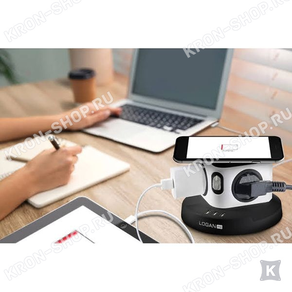 Настольный удлинитель Logan Wsb4-2 с функцией беспроводной зарядки имеет 4 розетки и 3 USB-порта для зарядки ваших устройств. В качестве защиты от детей используются специальные заглушки, делая устройство безопасным, а так же предусмотрена защита от короткого замыкания и перегрузки.