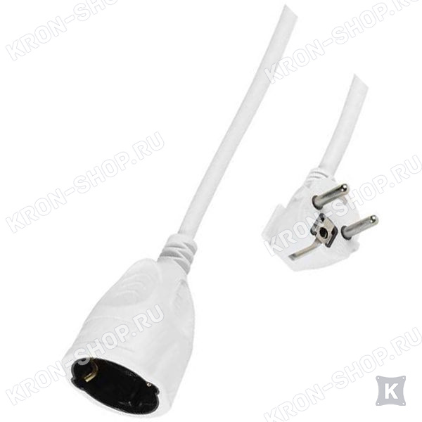 Электрический удлинитель серии SKV10W с заземлением. 1 розетка, 10 метров, белый цвет.
