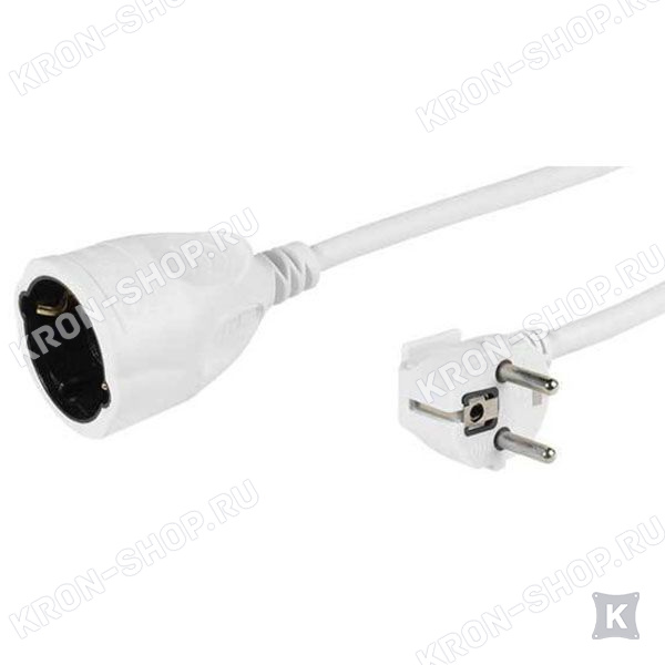 Электрический удлинитель серии SKV3W с заземлением. 1 розетка, 3 метра, белый цвет.