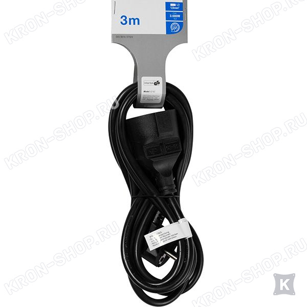 Электрический удлинитель серии SKV 3B-N с заземлением. 1 розетка, 3 метра, чёрный цвет.