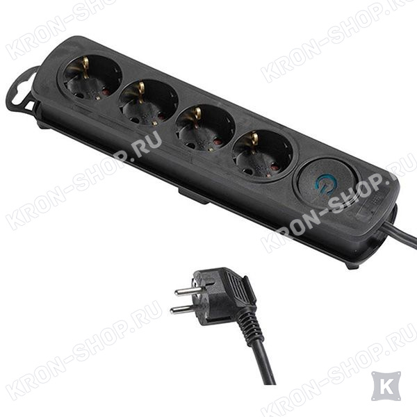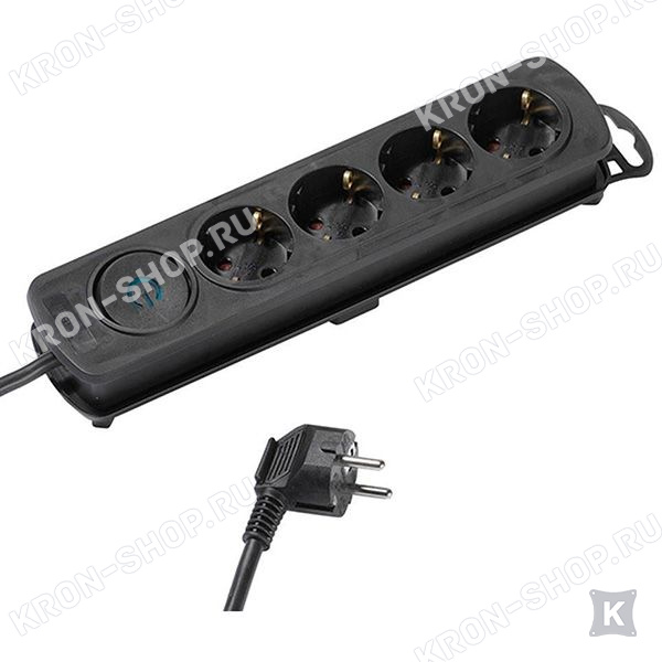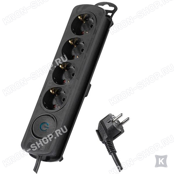 Электрический удлинитель серии Comfort-EKLS 4W с заземлением и защитой от детей. 4 розетки, 1,4 метра, черный цвет.