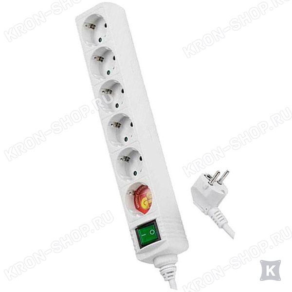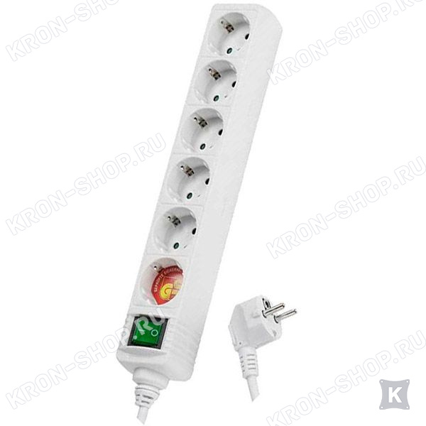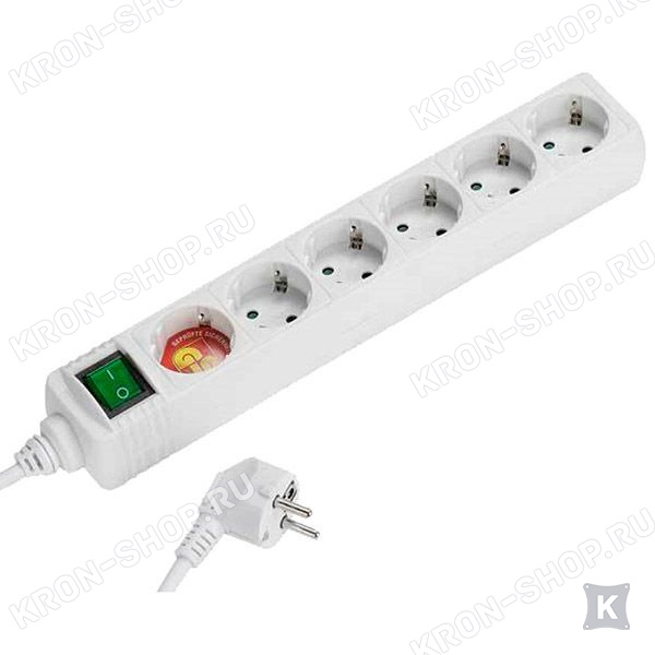 Электрический удлинитель с заземлением. 6 розеток, 1,4 метра, белый цвет.