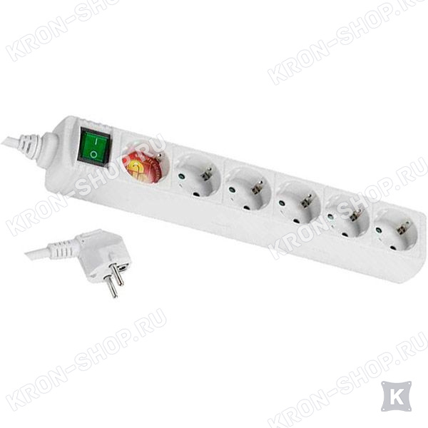 Электрический удлинитель серии SKV10W с заземлением. 1 розетка, 10 метров, белый цвет.