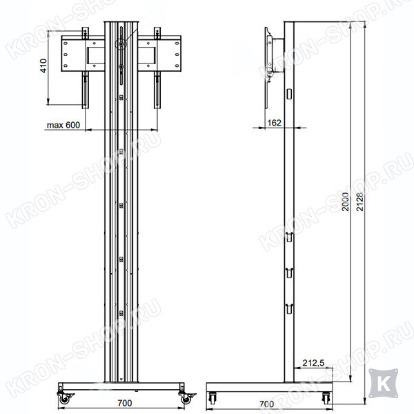 Мобильная стойка высотой 2100 мм, для телевизоров с диагональю от 32 до 55 дюймов.