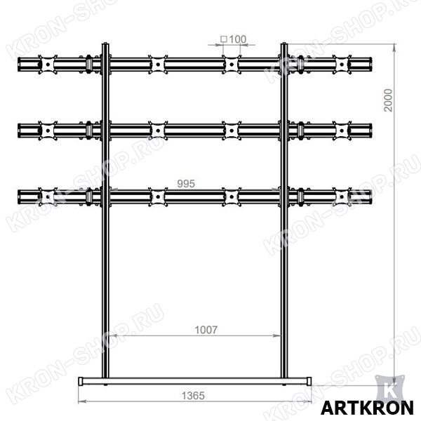 Напольная стойка для шести мониторов Стойка ARTKRON ST1243 – незаменимое решение для тех, кто использует в своей работе информацию из разных источников, сравнивает изображения или другие данные.
