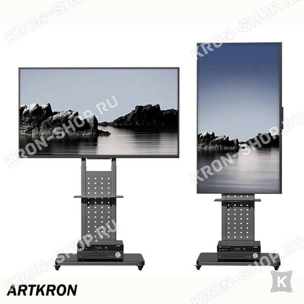 Мобильная стойка ARTKRON Stand-50 с настраиваемой ориентацией на подшипнике, подойдёт для всех типов современных телевизоров. Она разработана для размещения панели в портретной или альбомной ориентации. Подойдет для установки панели в информационных целях, например: в торговых залах, аэропортах, вокзалах, а также для офиса, чтобы проводить презентации, выставки и видеоконференции.