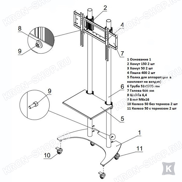 Дополнительно стойку можно укомплектовать полкой для AV оборудования.