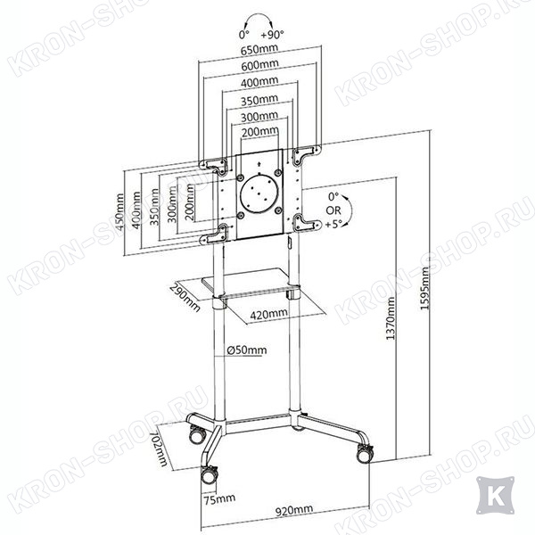 Мобильная стойка для телевизора или монитора с диагональю от 50 до 100 дюймов.