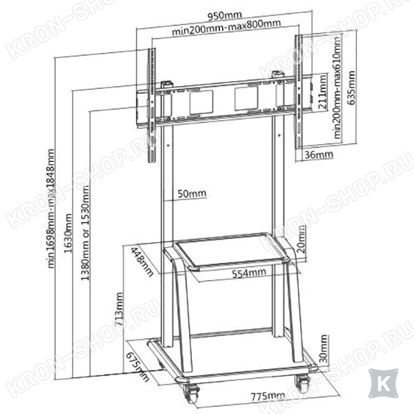 Передвижной столик для проектора с 2 полками.
