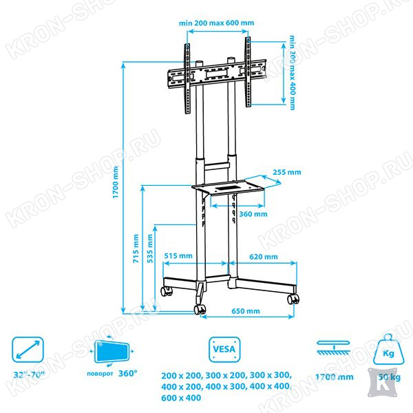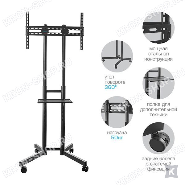 Kromax OMEGA-15 – мобильная стойка для всех типов современных телевизоров. Она идеально подойдет как для офиса, чтобы проводить презентации, так и для дома.