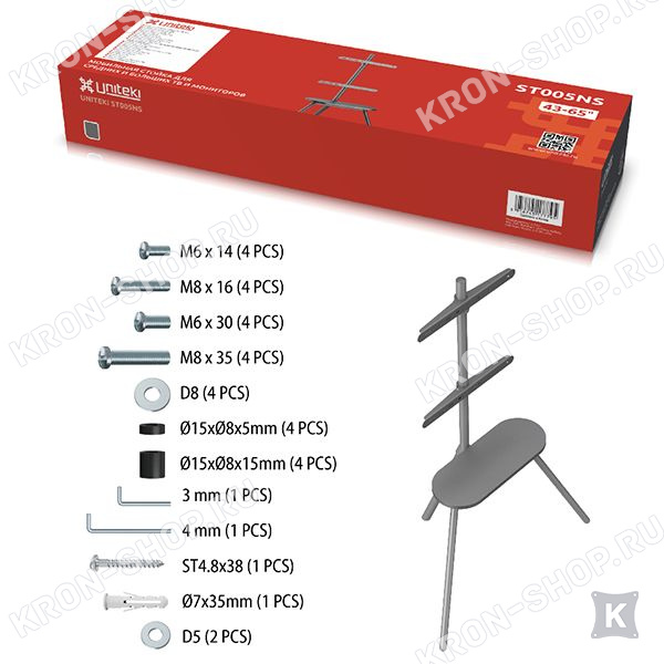 Стойка Uniteki ST005NS подойдёт для всех типов современных телевизоров.