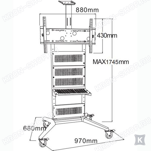 Мобильная стойка для телевизора или монитора с диагональю от 70 до 110 дюймов и весом до 120 кг.
