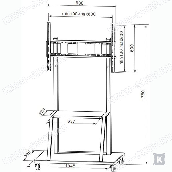 Мобильная стойка для широкоформатных и интерактивных панелей с диагональю от 42 до 90 дюймов.