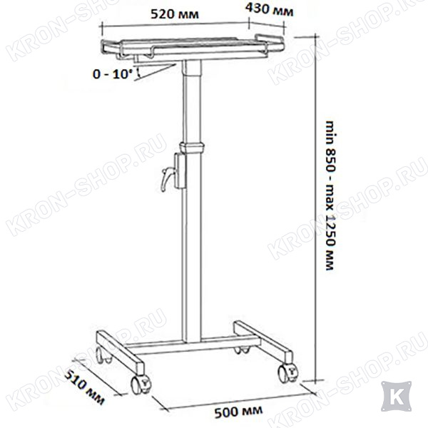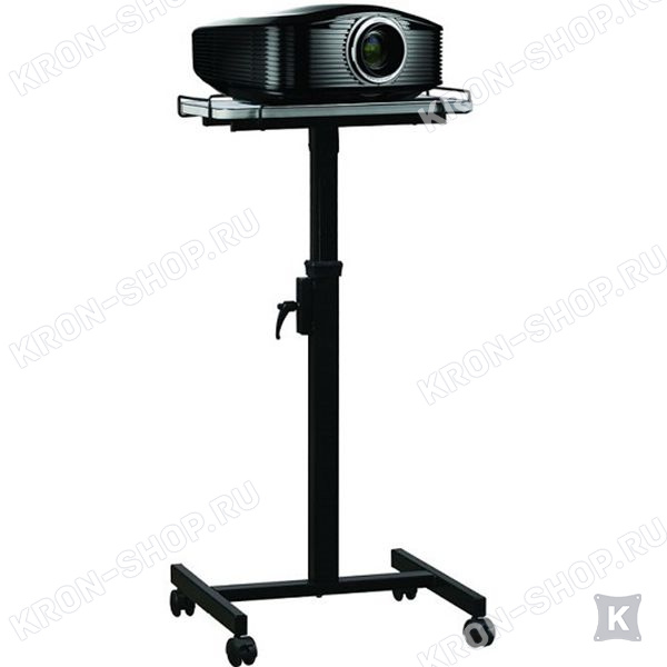 Полка регулируется по высоте и обладает возможностью наклона, делая проецирование более гибким. Благодаря этой функции, можно выбрать необходимый угол наклона исходя из расположения экрана. Дополнительное ограждение на полке защищает проектор от падения, придавая всей конструкции большую надежность. Четыре ролика с покрытием из высокопрочного каучука обеспечивают плавное перемещение столика по любой поверхности. Стойка имеет черное порошковое покрытие, что защищает изделие от ржавчины, коррозии и сколов и продлевает срок службы.